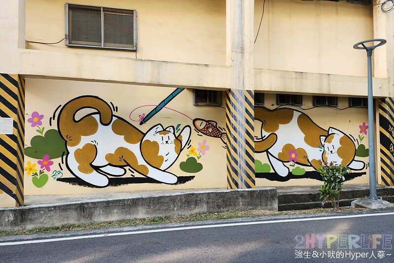 借完開騎!天氣很好騎起來很舒服,沒多久就看到路邊牆上有可愛貓咪壁畫~