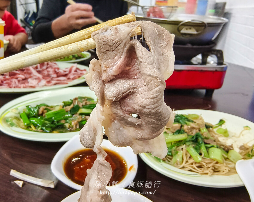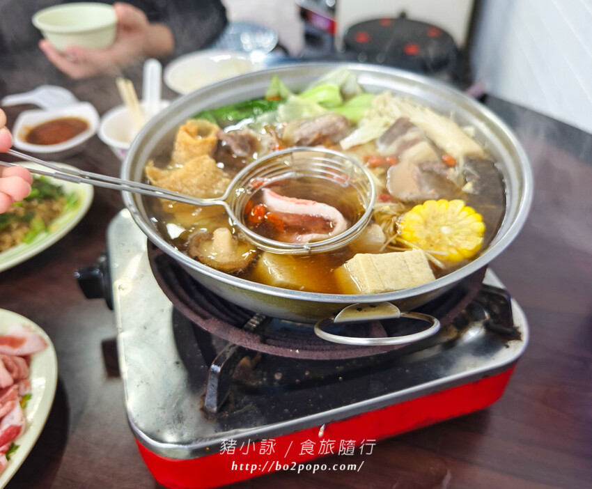 除了帶皮的羊肉外,也有含高麗菜、青江菜、凍豆腐、豆皮等配料,