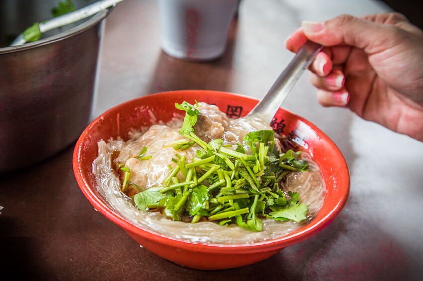 喜歡香菜的人有福了,假日來吃王罔麵線糊,桌上放一鍋香菜可以自己加,加好加滿!