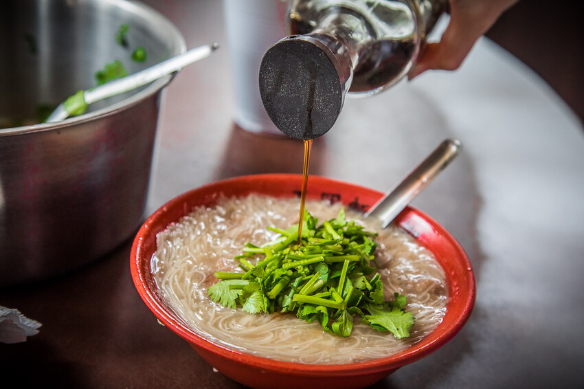 吃得時候建議可以加一點醋,王罔麵線糊的醋是用米醋,酸味比較柔和,加點辣更讚!