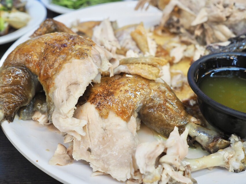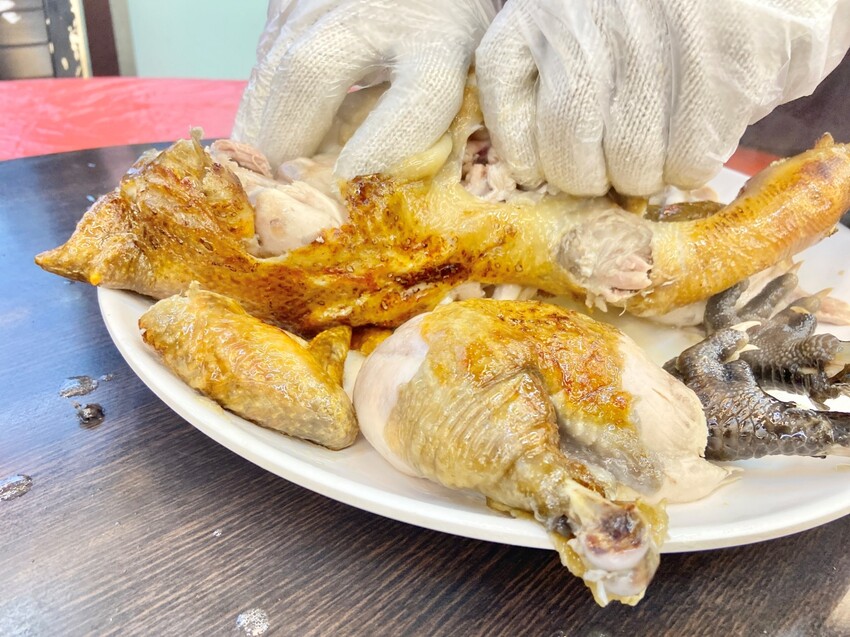採用4斤溫體雞,龍眼木窯烤的烤雞有著濃厚迷人的香料味道,烤雞在約高溫160度悶烤40分鐘,再以極高溫約220度將雞皮烤酥脆。