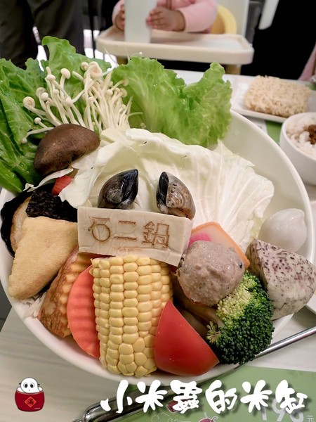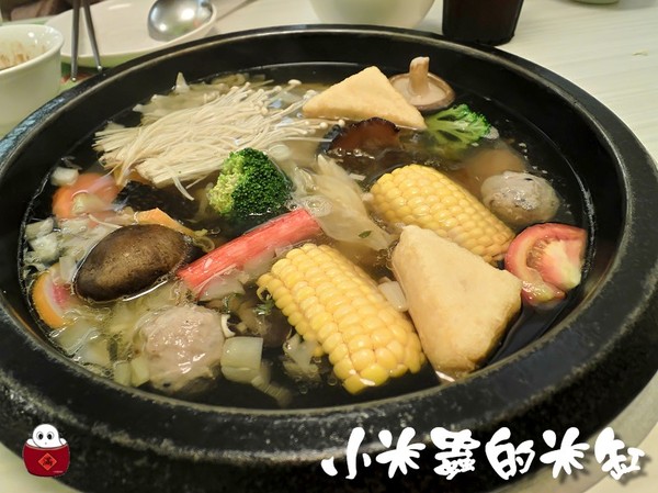 芋頭、南瓜、花椰菜、玉米、油豆腐、凍豆腐、甜不辣、蟳味棒、豬血糕、香菇丸、香菇、紅蘿蔔、水晶餃、魚板、番茄、金針菇、高麗菜、綠色蔬菜、蛤蜊,該有的一樣也不少,甚至多更多