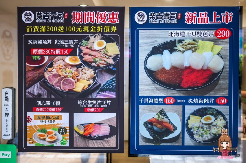 三重美食推薦「柴吉壽司」菜單提供握壽司、丼飯、手卷、散壽司、沙拉和生魚片等日式料理,之前在三重美食社團看到團友打卡推薦,招牌柴犬狗狗LOGO吸睛可愛,平日運氣好還有機會看到店狗。