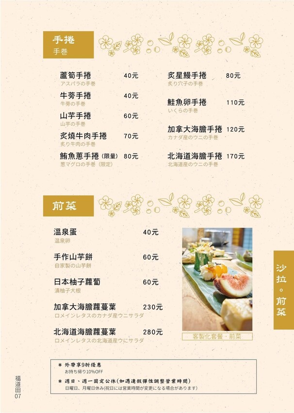 (以上菜單來源:福道田日式料理粉絲頁)菜單上的選擇真的不少,因此還請大家自行瀏覽喔