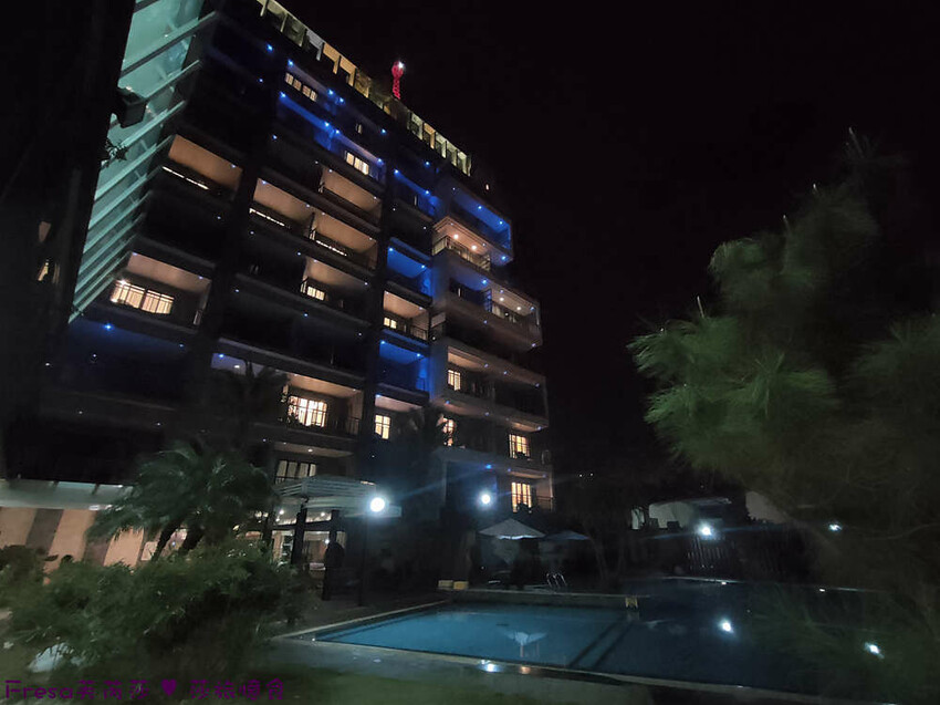 承萬尊爵渡假酒店,夜晚燈光較為昏暗.