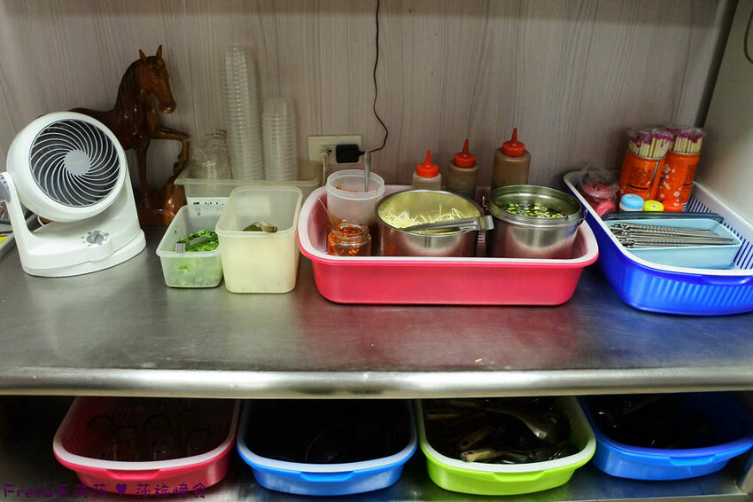 前面櫃上有各樣調味料及餐具可以自取.