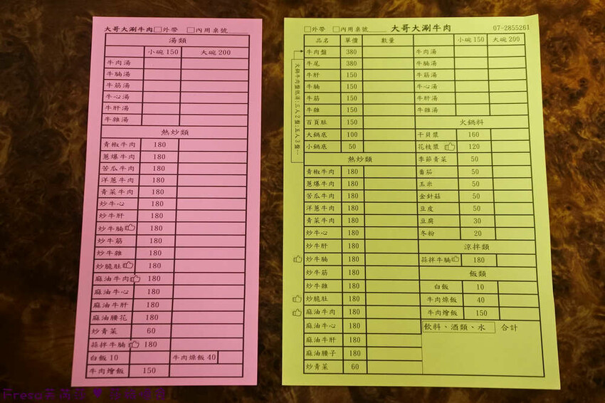 大哥大涮牛肉不論內用外帶都要填單.