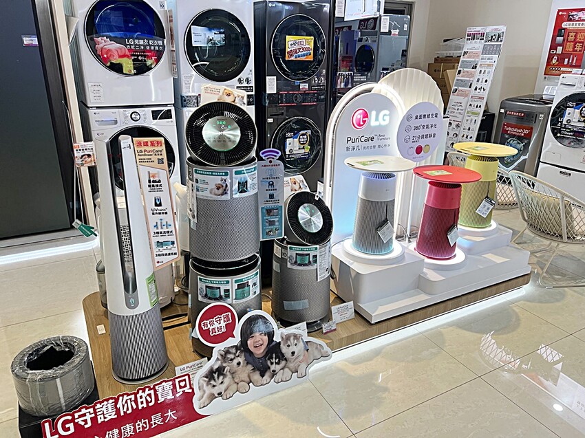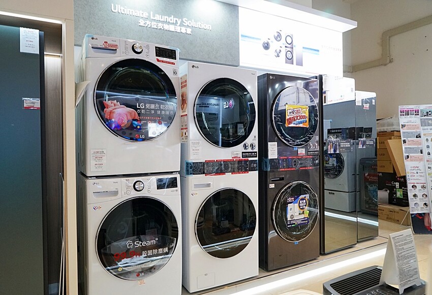 LG全方位衣物護理專家,滾筒式洗衣機、乾衣機,且還有殺菌除塵螨的機型,很適合家裡有過敏小孩的家庭。