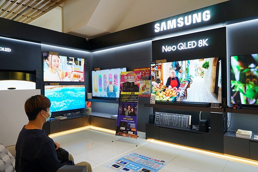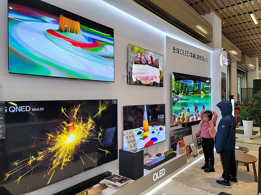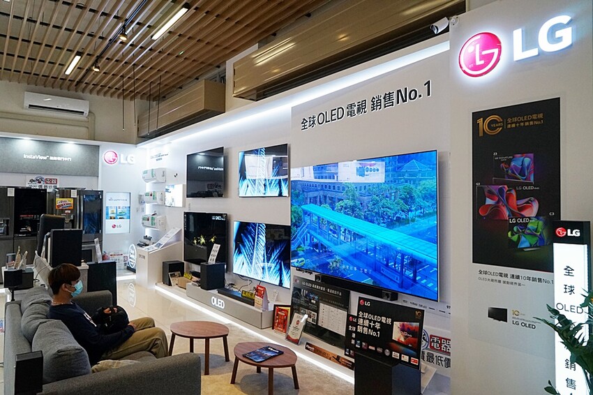 LG電視區前方還提供了沙發座椅,讓你宛如在自家客廳般的愜意享受看電視的樂趣,更能體驗出哪一台的螢幕大小尺寸、色系是自己喜歡的。