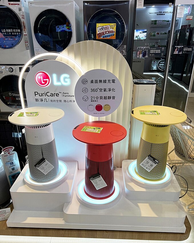 竟然還有LG最新型”桌型空氣清淨機”,且還內建無線充電功能呢