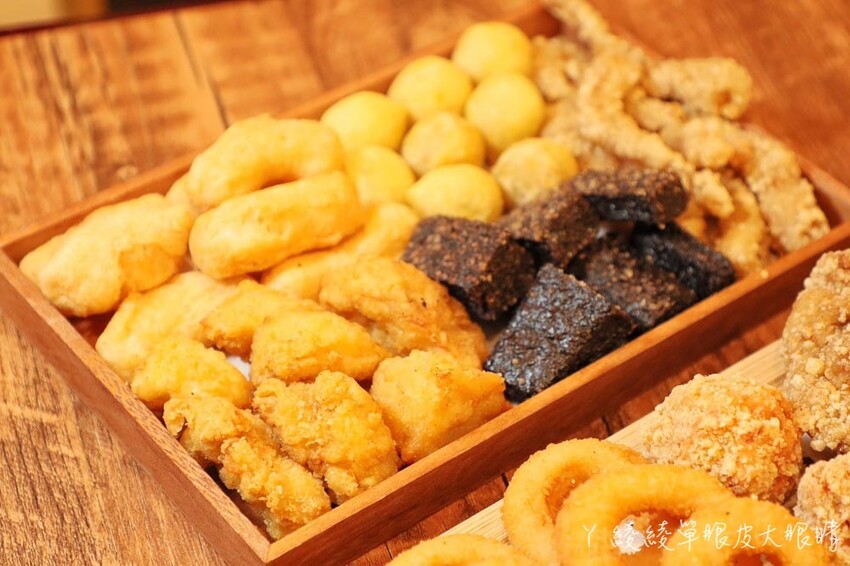 新開幕不久的寶島8號雞排竹科店,除了常見的炸物種類,還有很多特色食材呢!像是宜蘭三星蔥餅、軟Q澎湖魷魚腳、台南蝦捲、東港旗魚黑輪、隱形脆薯等等,尤其是黃金雞塊更是許多大人小孩一吃就上癮的!雞肉比例比一般雞塊都還要高呢!就連蔬菜種類也相當豐富。
