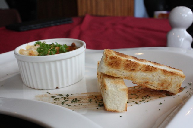 接下來是法式焗烤鮑魚角(代鮑魚),這是我同學點來品嘗鮑魚