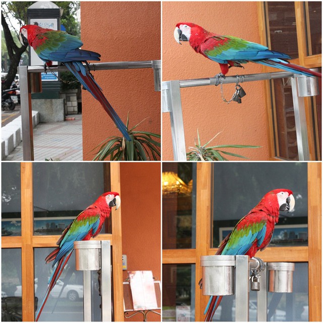 走進門口,可以看到一隻漂亮的金剛鸚鵡,但是有攜帶小朋友的話