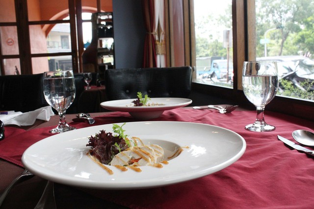 第一道上菜的菜色是梅醬培根布丁卷,是用雞胸肉搭配阿根廷的
