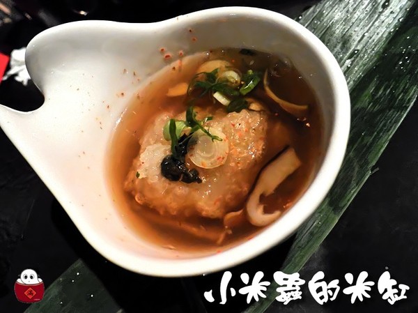 朋友說湯底下是炸過的飯糰,上面還有蕈菇