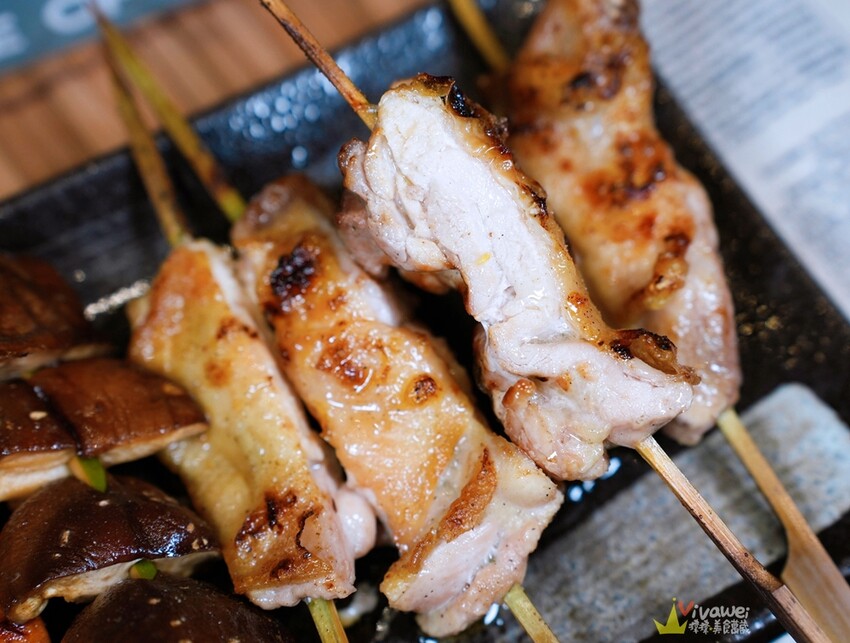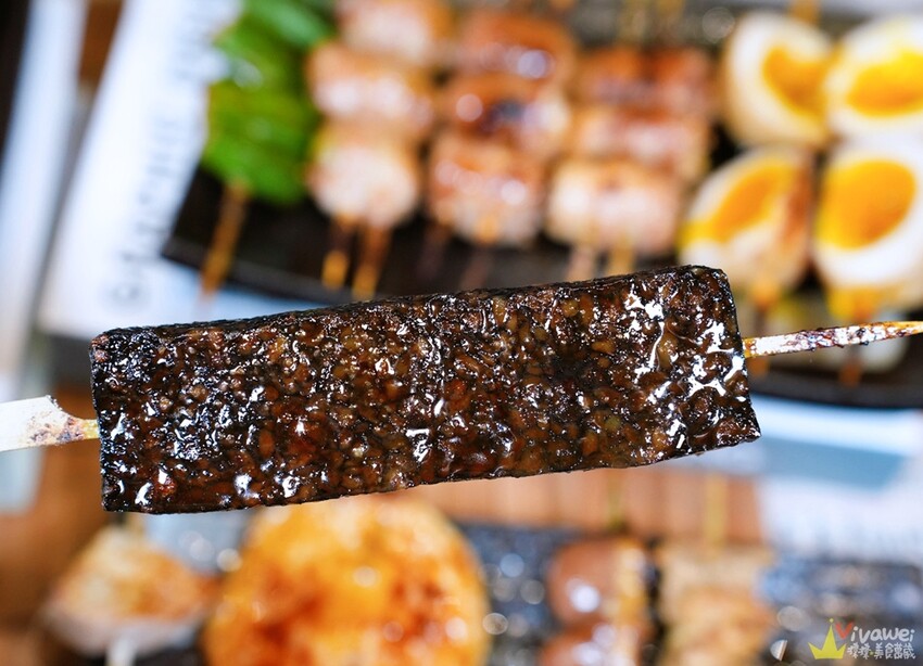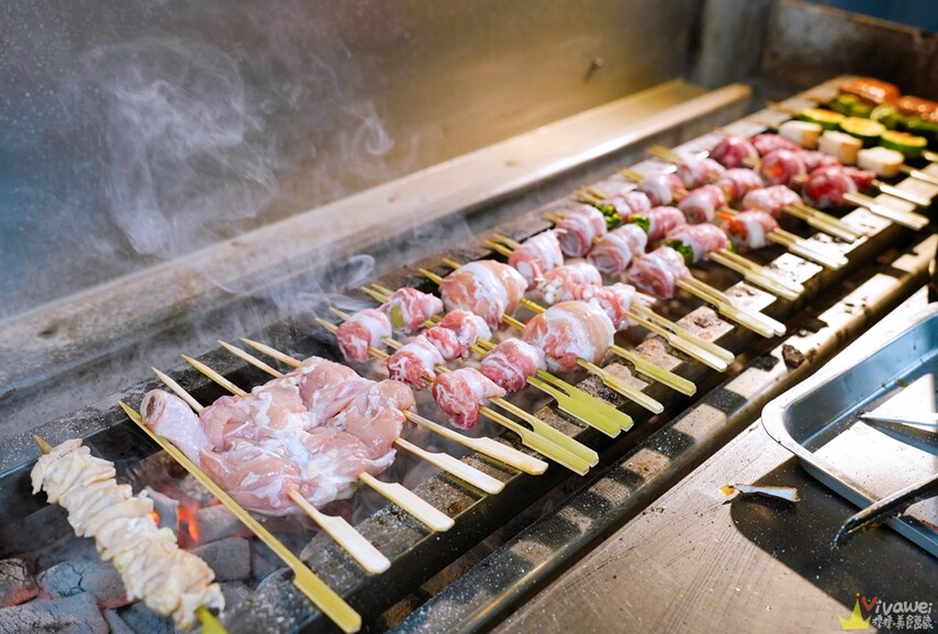 ▲串燒食材不油炸不鹽漬,使用純炭火燒烤,烤得恰到好處!在燒烤的過程某些食材會加上店家特製的醬料,反覆翻面並吸附醬汁,讓串燒可以夠味又好吃!