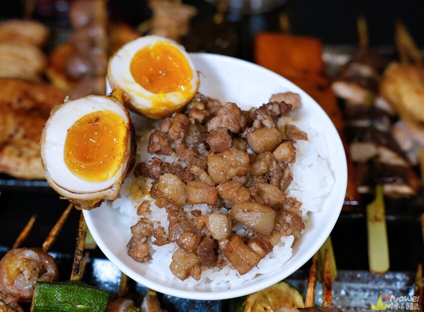 ▲店家現在有賣滷肉飯!如果擔心單吃串燒不夠飽足,也可以追加個滷肉飯來填飽肚子喔!個人很推薦加入剛剛的豬肉溏心蛋搭配,一口溏心蛋配一口滷肉飯,超級Match的啦!!!