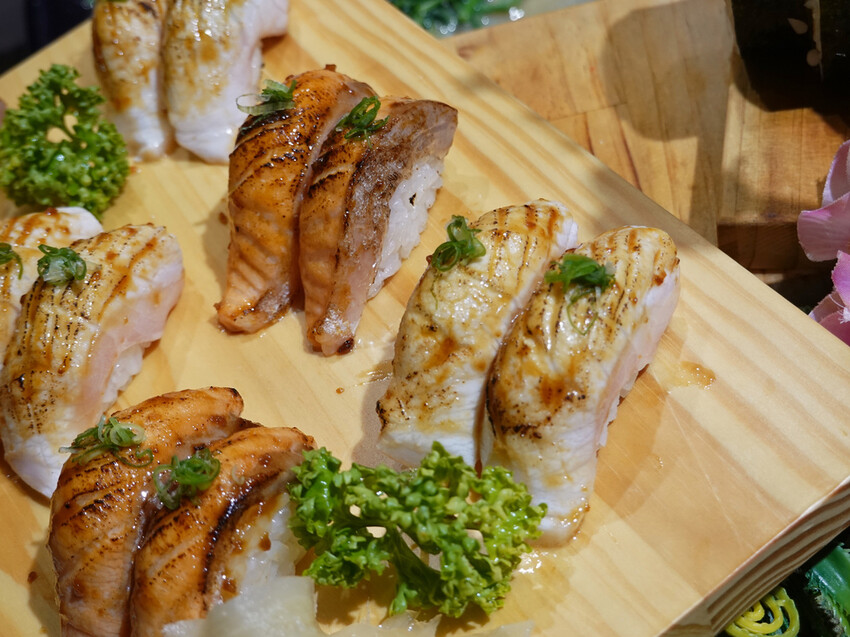 當天有鮭魚、鮪魚跟鰤魚三種,師傅會依照人數安排生魚片數量,若不吃生食者,也可以提前告知餐廳,會使用炙燒方式出餐。