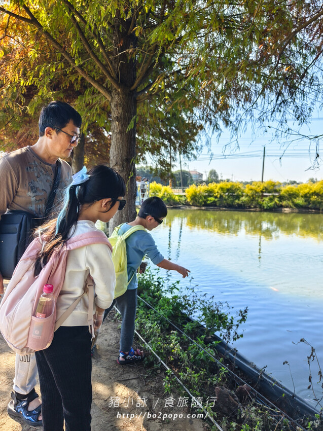 屁孩們就很愛這種餵魚的活動,魚塘內有不少魚,一有人餵食就爭先恐後湧了上來。