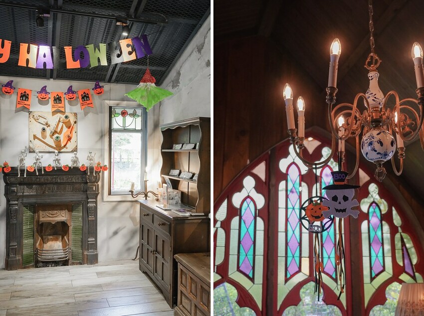 店內的內裝,完全就是個魔法屋,前往的日期正好是萬聖節前夕,掛上各式南瓜及鬼怪的裝飾更是有氛圍。山姆先生咖啡廳主要提供咖啡、冰沙及輕食為主,甜點有著厚片吐司、巴斯克乳酪蛋糕、馬卡龍等等,單品落在100元內,特別的是也有提供打拋豬肉飯、泡菜豬飯,不過正餐系列就要看運氣了,不見得每天都會提供。另外,其實店內安排的座位區非常~少,所以,外帶會比較合適喔