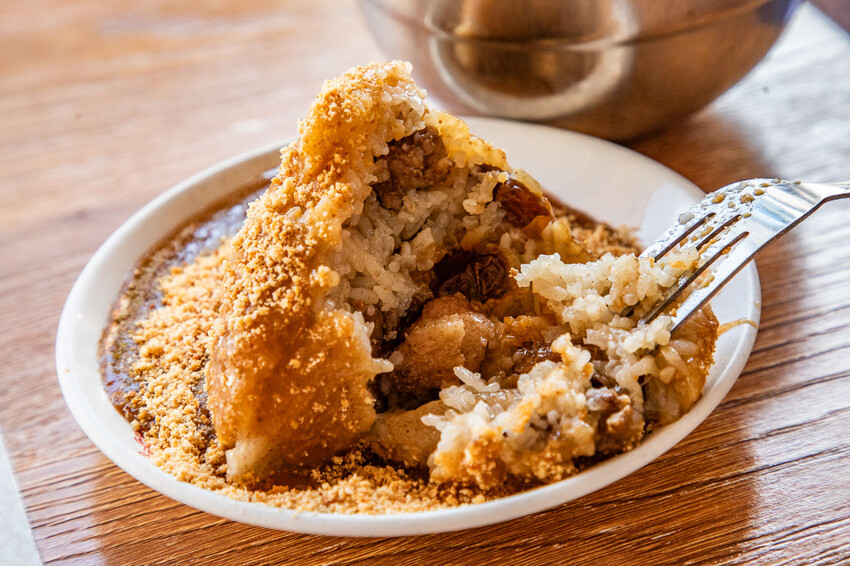 肉粽真的讓人印象深刻,糯米的口感煮得剛好,既柔軟又有彈性,搭配上偏向甜口的醬料和肥美的肉塊,尤其是肥肉與米粒緊密結合,每一口都讓人感到滿足,鹹鴨蛋和花生粉更是增色不少,各自帶來獨特的風味,讓整體味道更加豐富
