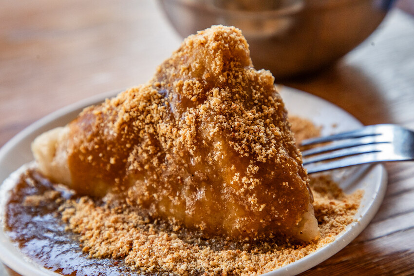 肉粽泰Tai拿到你的單後就會開始著手製作你的餐點,一顆顆粽子取出時冒著陣陣白煙,再淋上醬料跟花生粉,看起來就是好吃樣!
