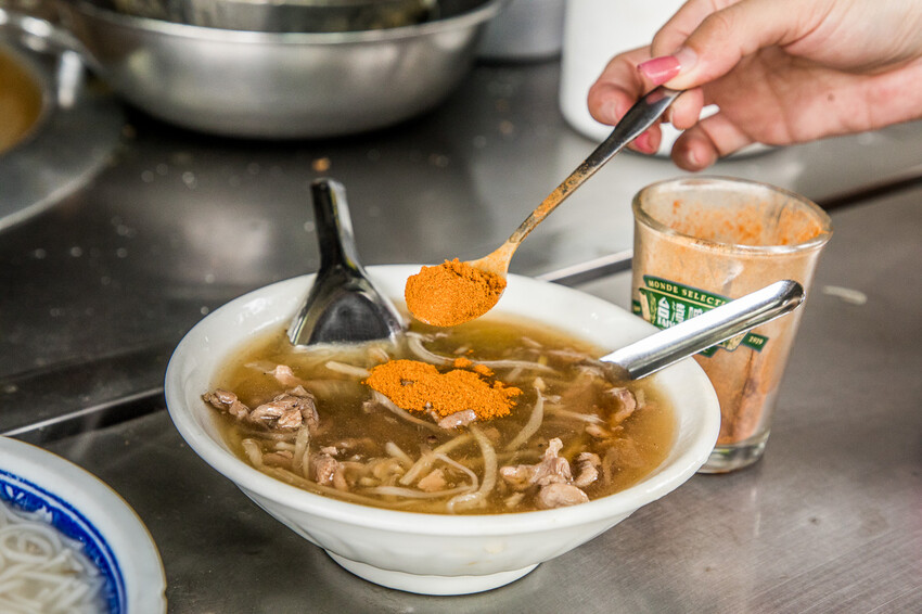 建議還有加一點辣椒粉更好吃,辣椒粉不會很辣,就是一點點微微的辣度跟香氣,更能增添鴨肉羹的層次口感