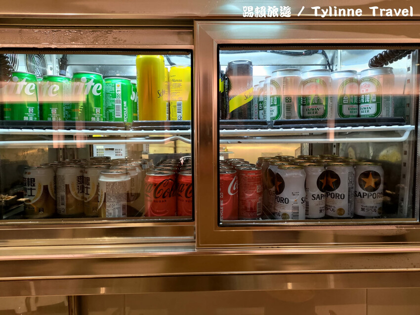 上方是飲料冰箱,都是以氣泡飲料跟啤酒為主