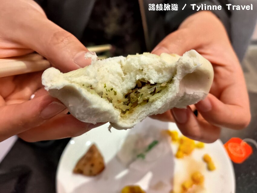 菜包的外皮鬆軟內餡紮實,而且醃漬非常入味,一口咬下滿滿的菜香散發出來