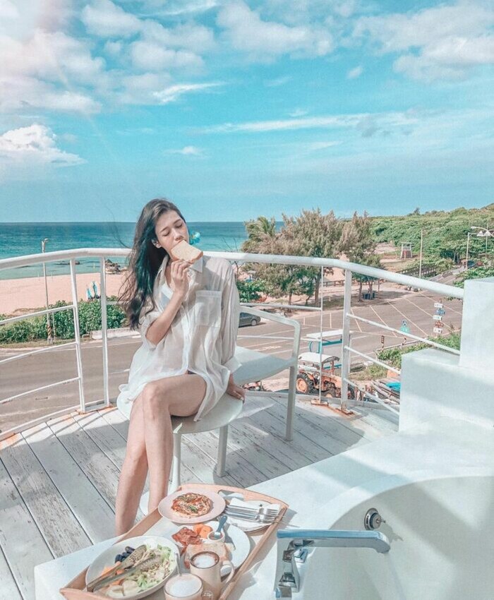 民宿日日旅海擁有超大片綠色草地,高低有次的白色房屋,在藍天白雲的映襯下,彷彿來到了地中海一般。民宿戶外有著絕佳的海景視野、木頭盪鞦韆、白色木柵欄、還有現在最紅的網美必備稻草捲,最棒的是,這些全都免費開放給路過旅人進入。當然,你也可以到民宿經營的咖啡廳優雅的吃一頓早午餐,慢慢享受眼前的美麗景色。
