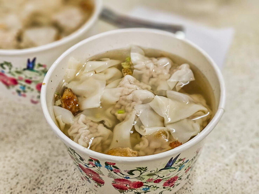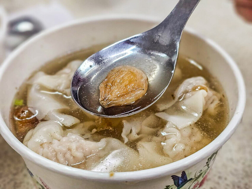 包著的豐滿肉餡的扁食皮很薄,但入口不會軟爛唷,吃的時候還可以感受到皮的存在,內餡吃起來是充滿肉香和扎實,豬肉味道稍重一些,湯頭方面蠻普通且清淡,是有加油蔥的大骨湯頭,要加胡椒才好喝一點
