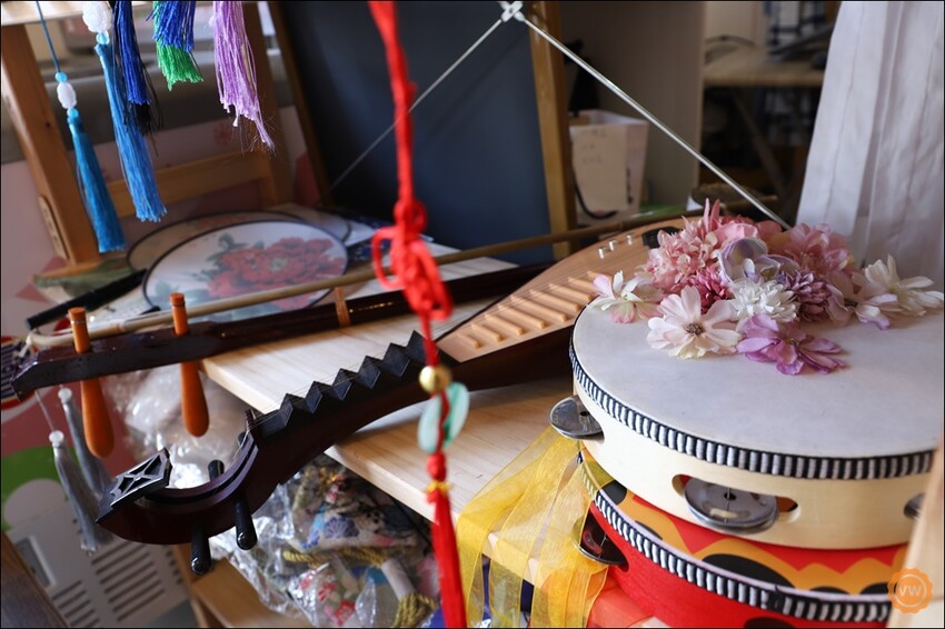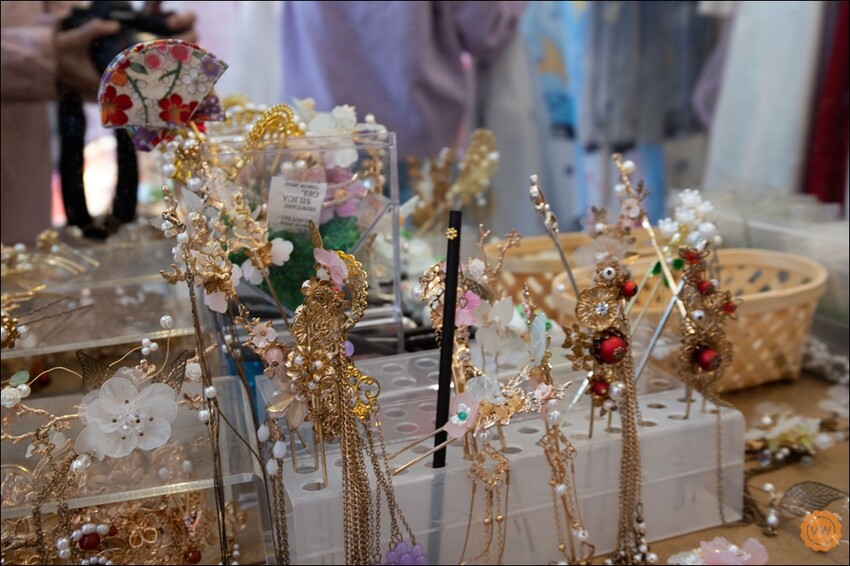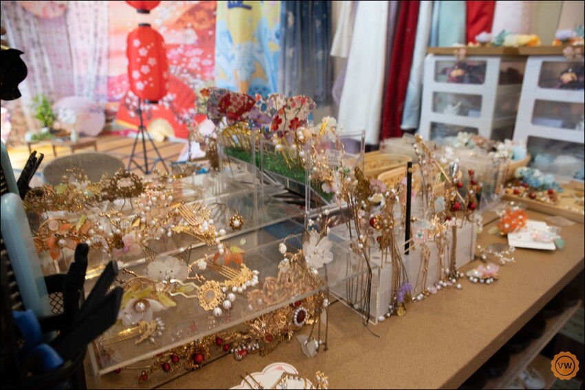 左側則是有另外的道具架,供遊客依照喜好或是服裝風格做搭配。