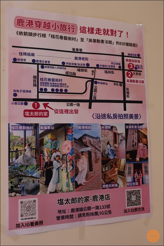 塩太郎的家(鹿港店) 是一家位在鹿港老街內,也就是在桂花巷藝術村旁、小鹿公園附近的一個服裝租借體驗的店家,雖然店面不是很大,不過預約前來體驗的人可是真的超多,店門口較小,目前只能停放一台汽車,不過別擔心,附近也有很多收費停車場哦!