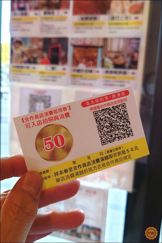 塩太郎的家鹿港店還有提供50元抵用卷,可在合作特約商店內消費折抵。