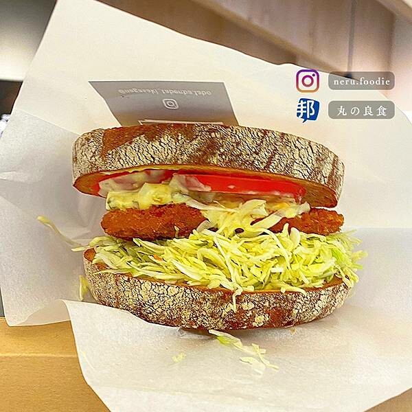 逛的有點肚子餓看到這個炸竹莢魚排堡就買來吃看看😋現做還蠻好吃的!!