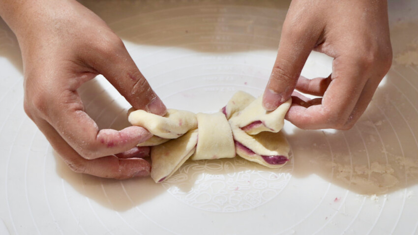 我真的超愛作烘焙,這次挑戰較高難度的麵包DIY「蝴蝶結紅莓乳酪麵包(詳細菜單)」建議時長3小時,約可製作6-7個麵包,費用為800元。