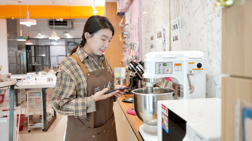 自由作烘焙DIY做蛋糕麵包,店員會將材料放置於推車中,需要的材料器具都會放在這,只要跟著平板DIY,就能做出美味的甜點囉~