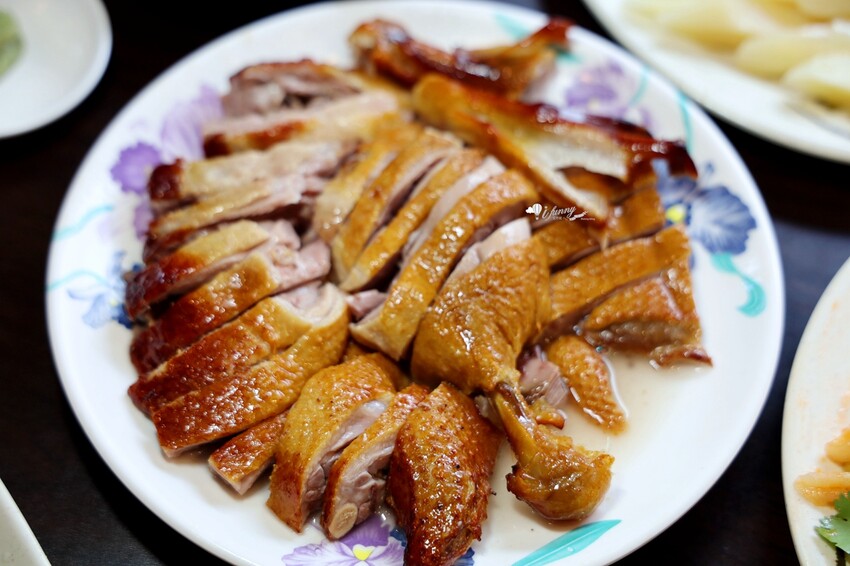 據知鴨肉送是選用3~4個月的土番鴨,當天現宰,鴨子煮熟後再用白糖煙燻,煙燻過的鴨皮呈現金黃亮澤,好令人垂涎!