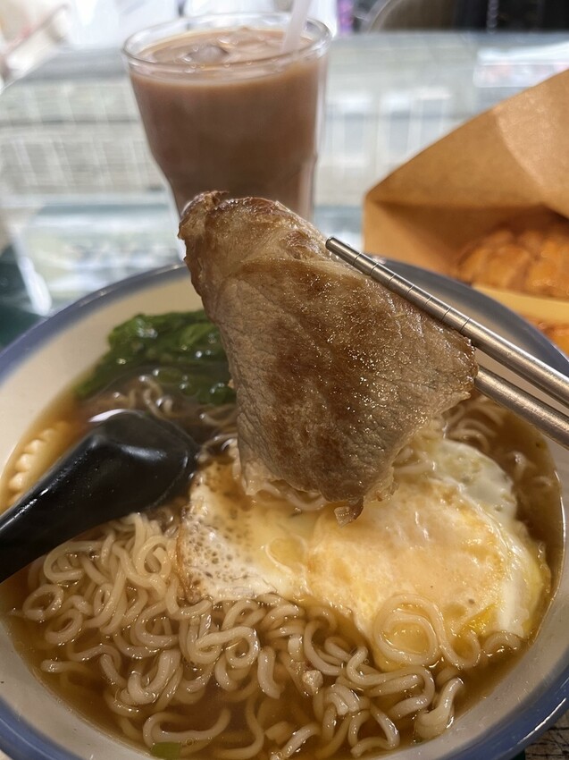 接著是我的【出前一丁豬扒麵】,老闆會詢問蛋的部分要半熟還是全熟