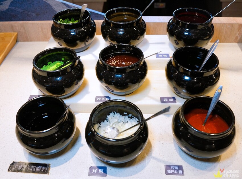 ▲醬料區有蔥花、辣椒、沙茶、芥末、醬油、主持特製醬料、洋蔥、石頭獨門沾醬等,可自行搭配使用!