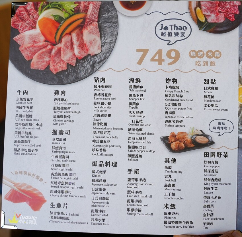▲749元吃到飽的內容(實際販售品項與價格,以店家現場公告為主)