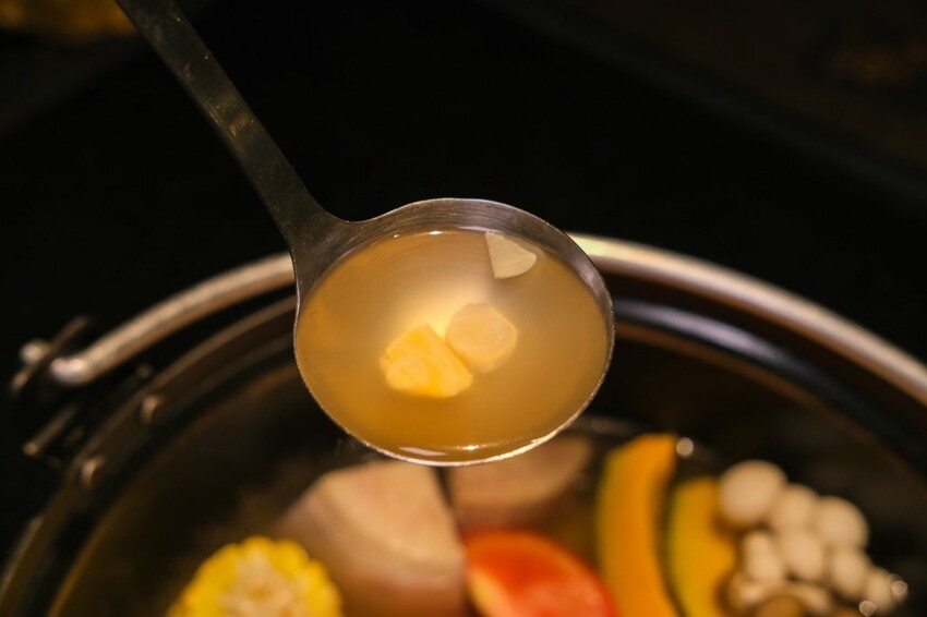 ▼湯底採用老母雞與白甘蔗為基底,加入多種當季鮮蔬果及日本干貝,完全不添加人工味料,細火慢熬成就出清爽滋味!