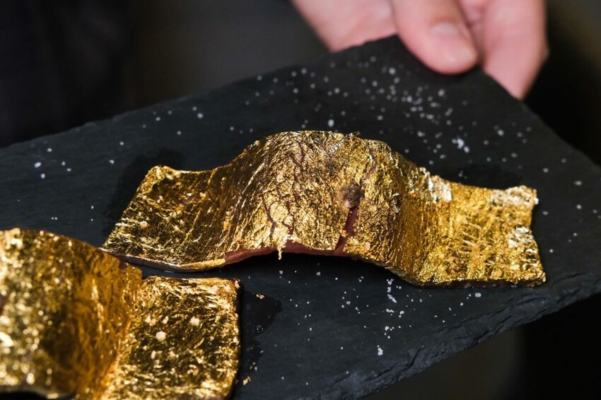 ▼奢華到不行的黃金和牛也是必點,在A5日本和牛上鋪了滿滿金箔,肉質軟嫩多汁,放入嘴裡瞬間入口即化,讓人不自覺充滿幸福感,而且超適合打卡拍照!