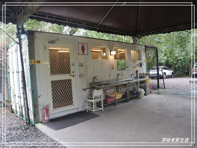 我們E區的衛浴就在我們露營車斜前方,相當近很方便,看起來很奇妙的竟是貨櫃屋嗎😆。