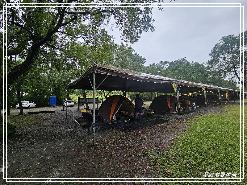 同樂營地全部都是這樣的大雨棚營位,沒有草皮,遇到這樣的下雨天應該會有得救了的感覺😂😂,否則收溼帳是多讓人崩潰的事啊XD,這要有經歷過的人才知道。
