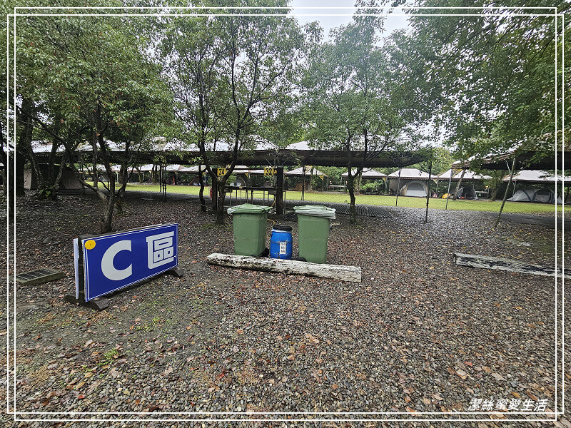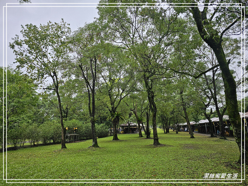 園區很寬廣,光是每區中間的草地就已經很有餘裕,也還有這樣的綠樹庭園,怪不得營地名稱就叫同樂休閒綠園道,真的名副其實XD,整體的環境很舒適。
