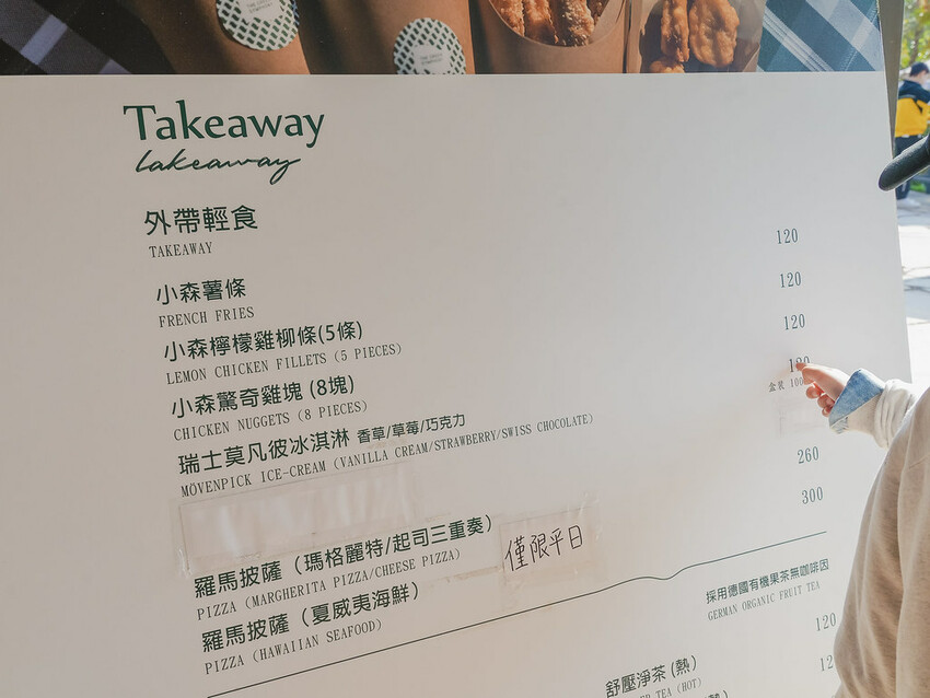 入場的門票中,有100元的餐點抵用券,建議中午時分用餐,因人潮眾多建議要提前預約。另外,若是不想在園區用餐,可以選擇在1F及鬆餅屋購買小點,坐在草地上簡單享用也可以