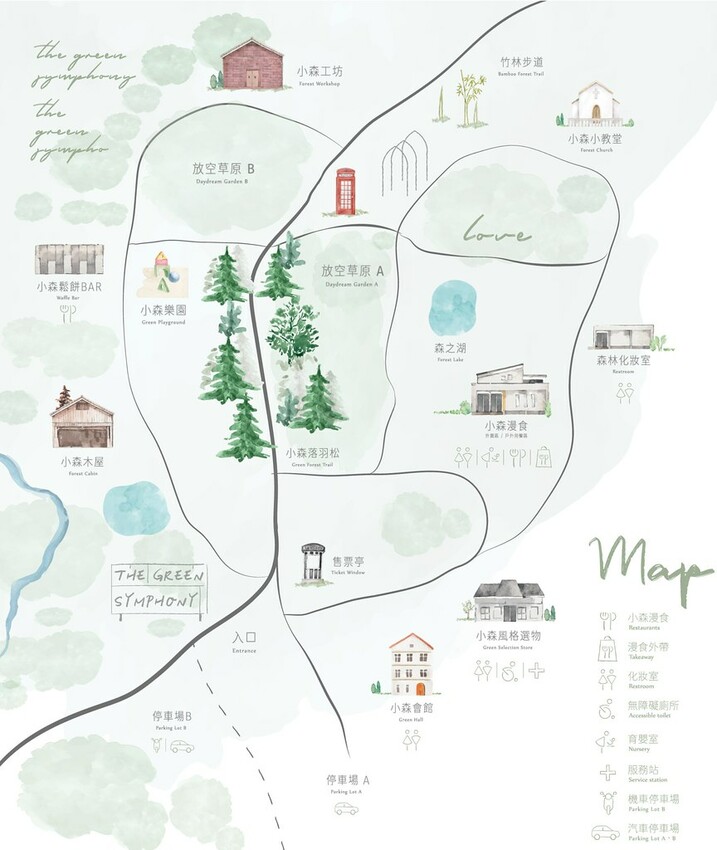 其實園區並不大,絕大部分的空間是留給大草坪,讓旅客可以鋪上野餐墊休憩,前往的當天是個天氣非常舒適的週末,其實,除了親子客之外,更多的是情侶帶著寵物一起前來,下午時分,大家就這樣在草地上曬著暖陽,著實愜意。另外,園區有一處『白色的夢幻小森教堂』,也是婚紗外景常常會安排的景點;而小朋友最喜歡的『白沙區』,也算是相當乾淨,但需要自行攜帶玩沙道具喔!