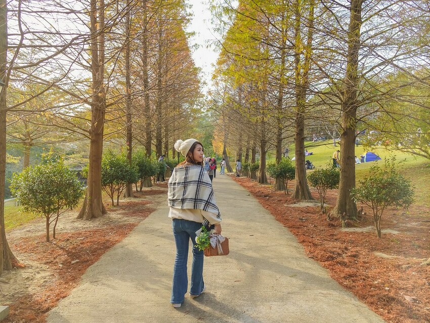 如果你有自備野餐墊,真的是隨處可以席地而坐,除了享受第一排的落羽松美景,還可以到小森漫食的一樓,購買一些簡單的炸物小點及飲品,找個喜歡的草地區域,鋪上野餐墊,坐在綠地上野餐吧!真的不誇張,在冬天能這樣曬著太陽休息,真的超舒服,看到許多遊客都直接“席地而睡”,環境實在太愜意了!