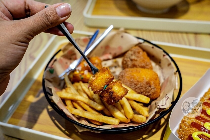 拼盤的部分有炸鮮奶、薯條和滿滿獨家起司麻糬。